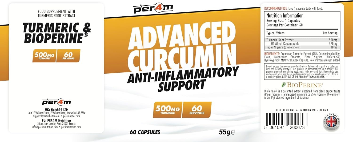 PER4M Advanced Curcumin is your daily go-to for joint support, recovery and all-round body resilience. Each capsule delivers a punchy 500mg dose of turmeric extract, packed with 95% curcuminoids — the active compounds behind turmeric’s reputation for anti-inflammatory and antioxidant power. It’s high-strength, once-a-day and built to keep you moving.