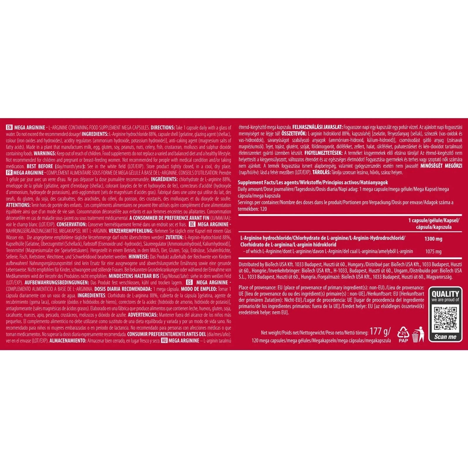 1300 mg L-Arginine hydrochloride in one mega capsule
